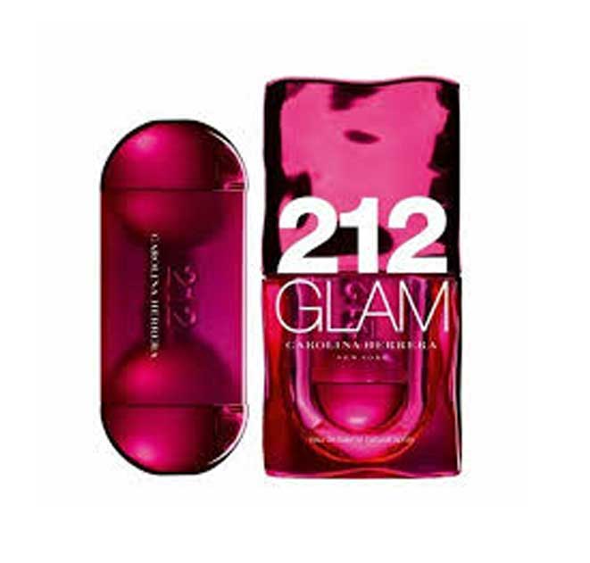 روی بطری این عطر نام ۲۱۲ Glam با رنگ سفید دیده می‌شود.
