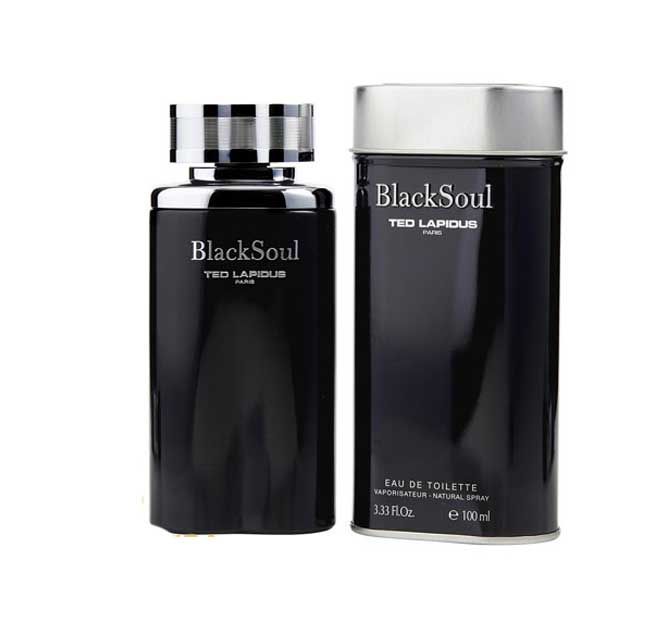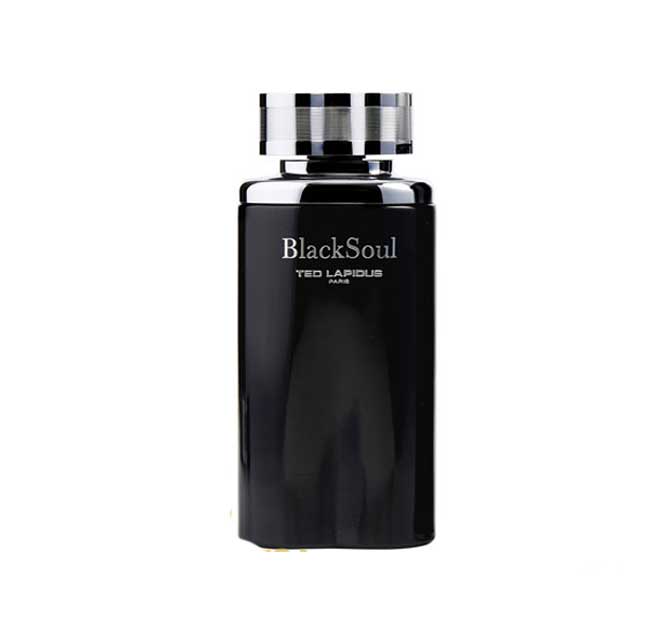 روی بطری سیاهرنگ این عطر نام Black Soul و در پایین آن نشان Ted Lapidus را مشاهده میکنید.